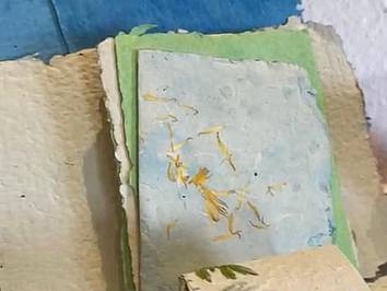 Bei diesem Kurs wird Nachhaltigkeit groß geschrieben. Von der Pulpe – dem Papierbrei – bis zur getrockneten Blüte bekommen gebrauchte oder vergängliche Dinge ein neues Leben.