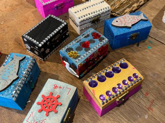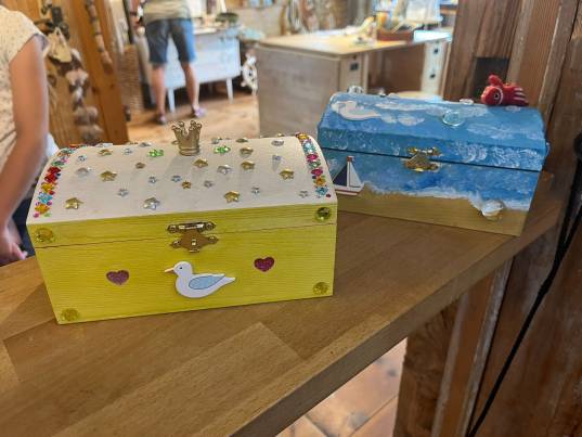 In unserem Kurs entsteht eine wundervolle Schatzkiste. Verziert mit allem, was Ihr wollt. Mit Farben, Glitzer, Steinen und und und.